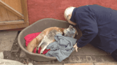 AWW! I swaer that has got to be on a list of the coolest things…rub a fox tummy.