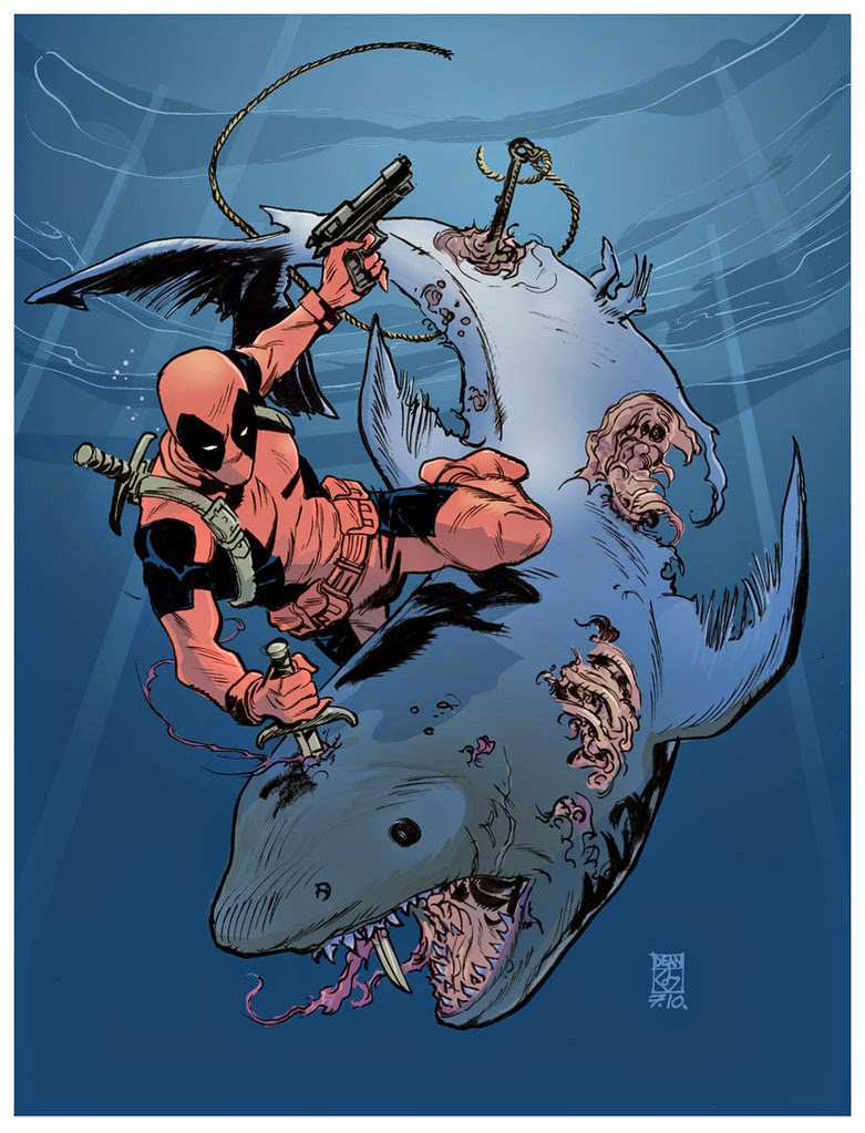 Two great things that go great together…. July 30, 2014 by Bruce Shark, posted in Bruce Shark Two great things that go great together…. DEADPOOL AND GREAT WHITE ZOMBIE SHARK artist: Dean Kotz Share this: Click to share on Facebook (Opens in new window) Facebook Click to share on X (Opens in new window) X Like Loading...