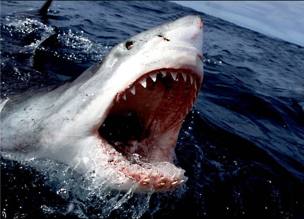 Sometimes when I fight other great whites for fud, we engage in slapping and displays of strength…we don’t always bite one another, because if we did, we’d injure each other most grievously…