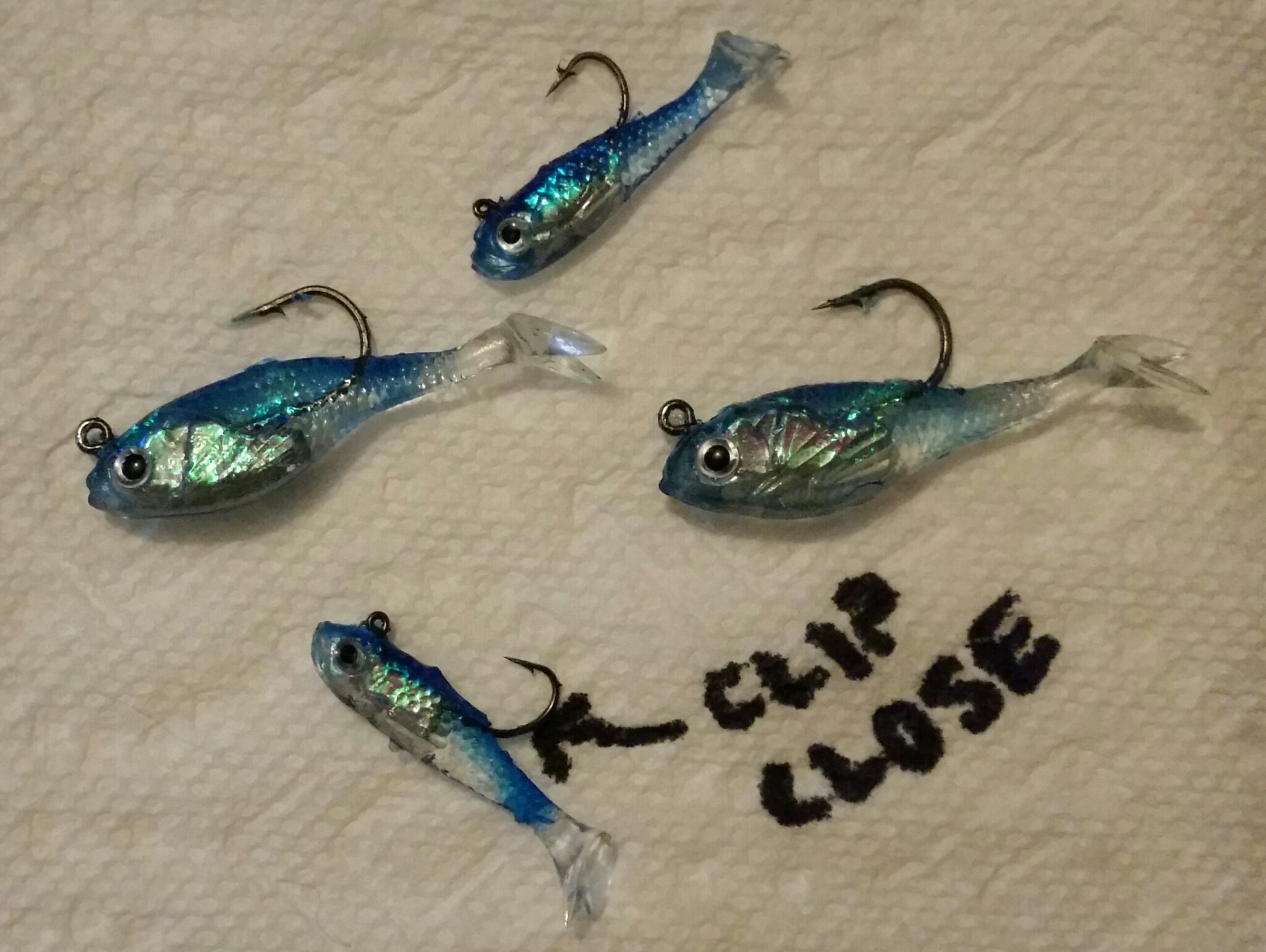 1.) Buy bait lures, earring hooks, stretchable jewelry cord.