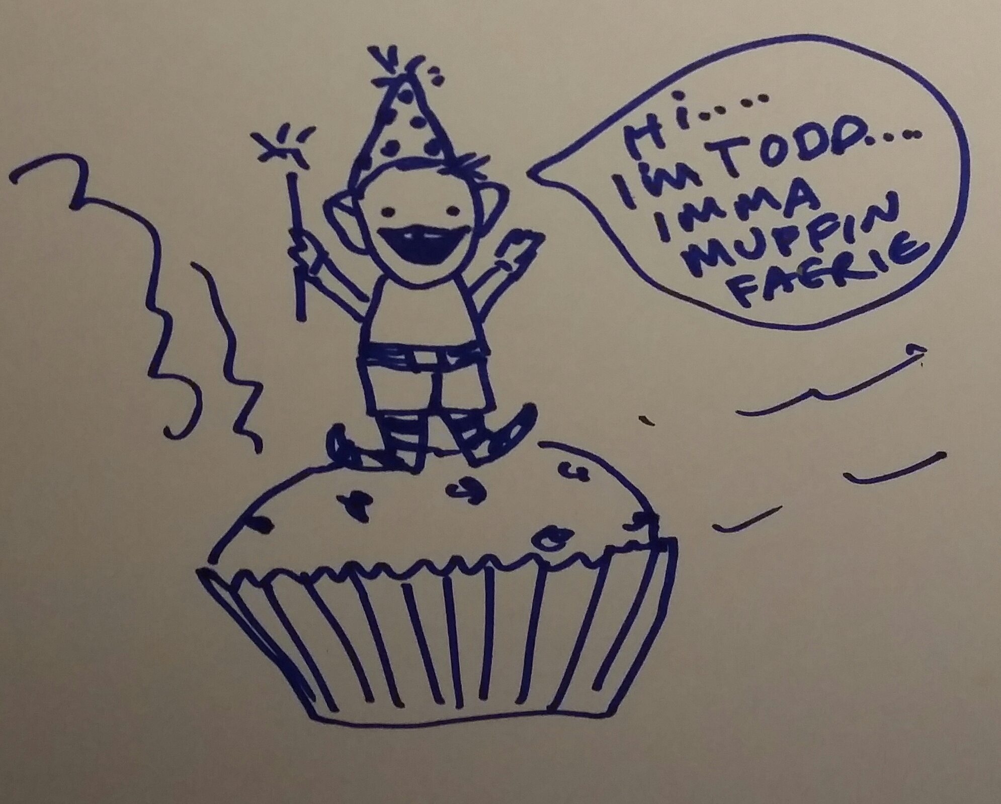 O, look. April 15, 2016 by Bruce Shark, posted in Bruce Shark O, look. A Magical Muffin Faerie…. Apparently, his name is Todd. Share this: Share on Facebook (Opens in new window) Facebook Share on X (Opens in new window) X Like Loading...